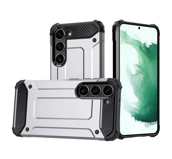 Defender szilikon telefonvédő (ütésállóság, légpárnás sarok, fémhatás) EZÜST