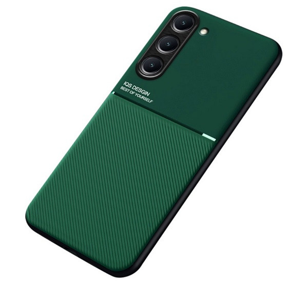Szilikon telefonvédő (ütésállóság, mágneses, bőr hatású hátlap, csíkos) SÖTÉTZÖLD