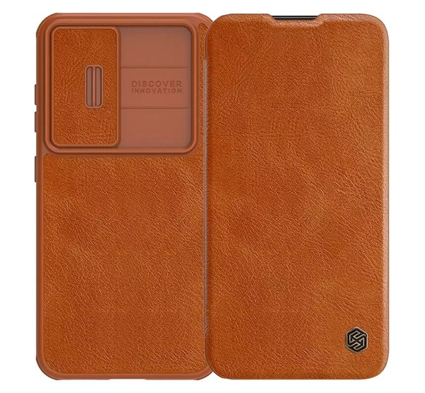 NILLKIN QIN PRO tok álló, finom bőr hatású (FLIP, oldalra nyíló, kártyazseb, kameravédő) BARNA