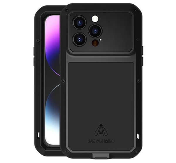 LOVE MEI Powerful defender műanyag telefonvédő (fém keret, erős ütésállóság, porálló + képernyővédő üveg) FEKETE