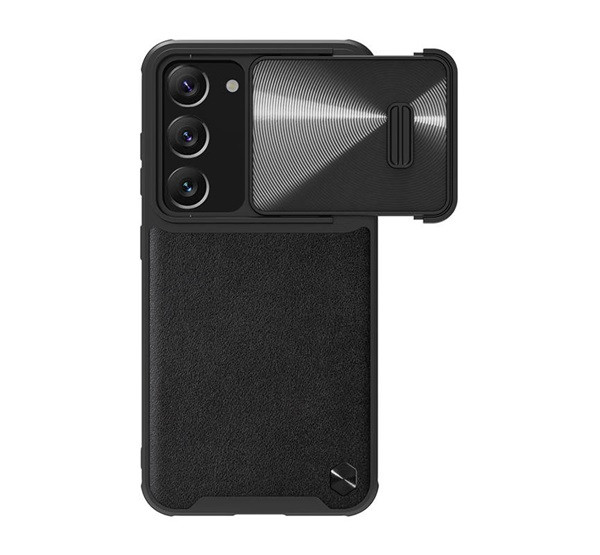 NILLKIN CAMSHIELD LEATHER műanyag telefonvédő (ütésállóság, ECO bőr hatású, kameravédő) FEKETE