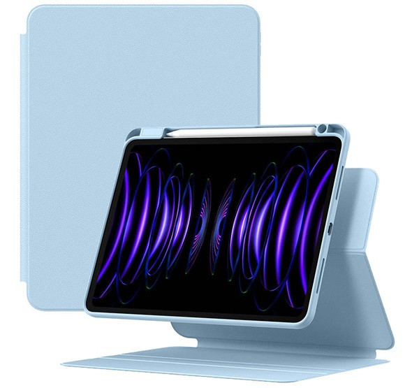 BASEUS MINIMALIST tok álló, bőr hatású (aktív FLIP, mágneses, TRIFOLD, asztali tartó, ceruza tartó) VILÁGOSKÉK