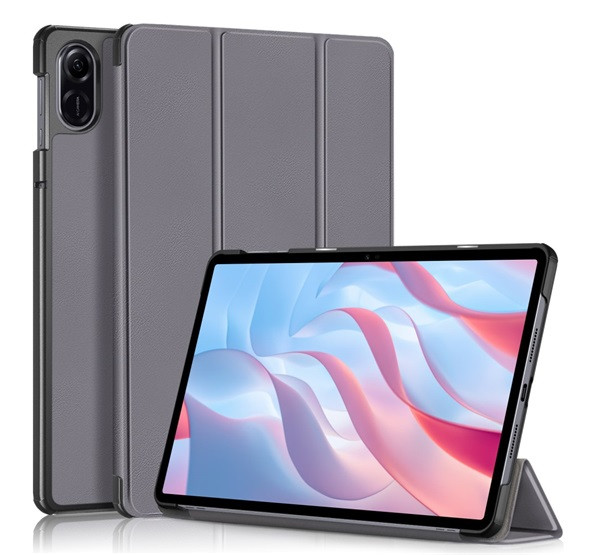 Tok álló, bőr hatású (FLIP, oldalra nyíló, TRIFOLD, asztali tartó) SÖTÉTSZÜRKE
