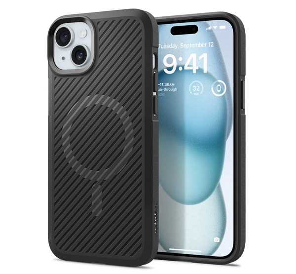 SPIGEN CORE ARMOR MAG szilikon telefonvédő (ütésállóság, kameravédő, csíkos, MagSafe) FEKETE