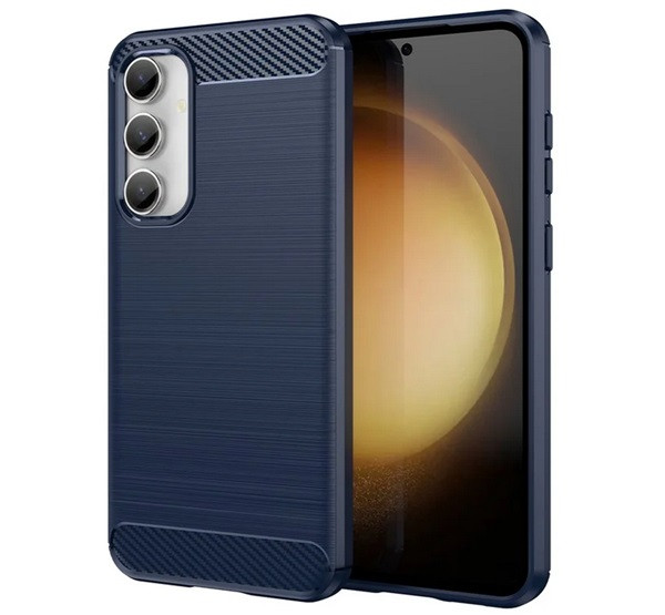 Szilikon telefonvédő (ütésállóság, légpárnás sarok, szálcsiszolt, karbon minta) SÖTÉTKÉK