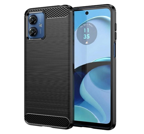 Szilikon telefonvédő (ütésállóság, légpárnás sarok, szálcsiszolt, karbon minta) FEKETE