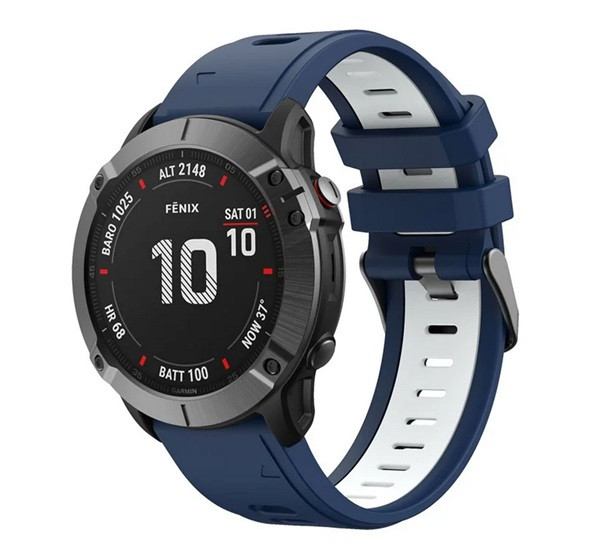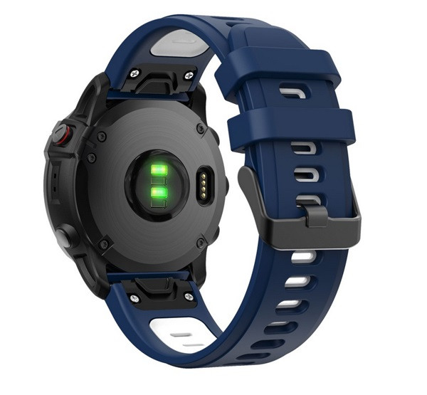 Pótszíj (egyedi méret, 22mm, szilikon, fekete csat, QuickFit csatlakozás) SÖTÉTKÉK/FEHÉR