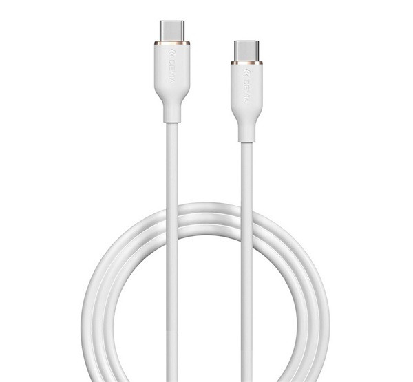 DEVIA JELLY adatkábel (Type-C - Type-C, 60W, gyorstöltő, 120cm) FEHÉR