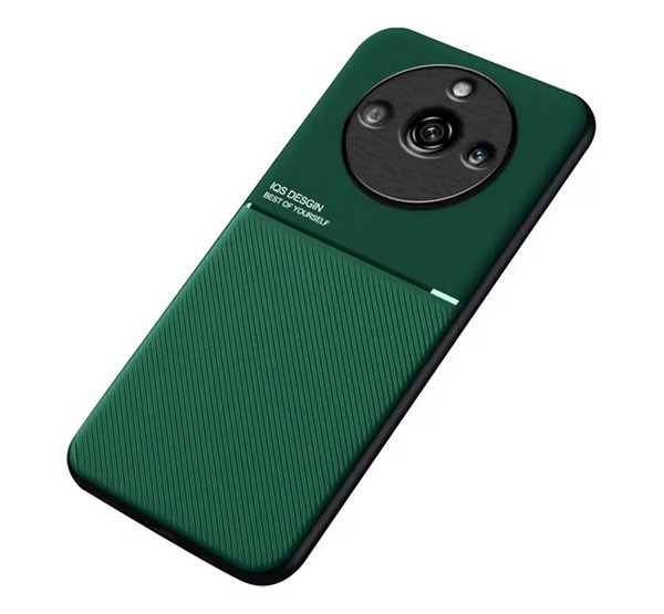 Szilikon telefonvédő (ütésállóság, mágneses, bőr hatású hátlap, csíkos) SÖTÉTZÖLD