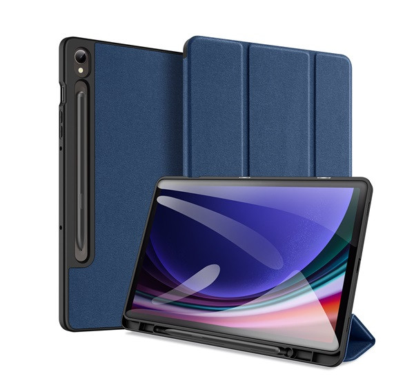 DUX DUCIS DOMO tok álló, bőr hatású (aktív FLIP, oldalra nyíló, TRIFOLD, asztali tartó, textil minta) SÖTÉTKÉK