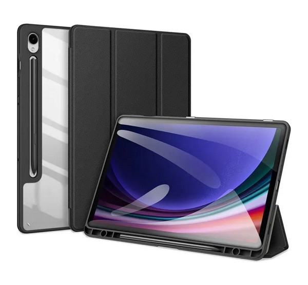 DUX DUCIS TOBY tok álló, bőr hatású (aktív FLIP, oldalra nyíló, TRIFOLD, asztali tartó, ceruza tartó) FEKETE