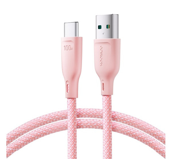 JOYROOM adatkábel (USB - Type-C, 100W, gyorstöltő, cipőfüző, 100cm) RÓZSASZÍN