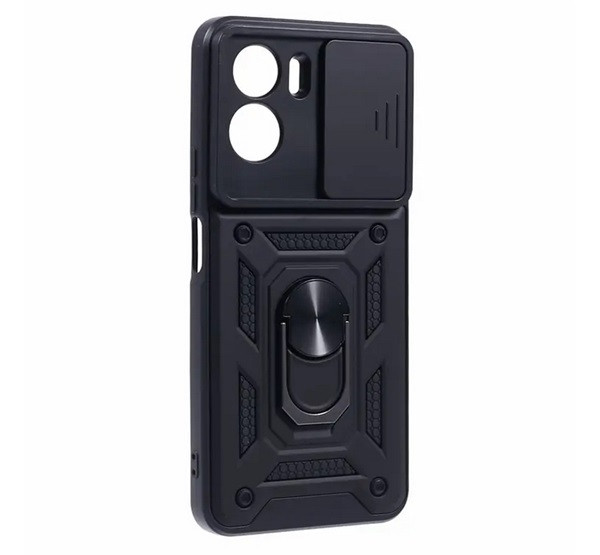 Defender szilikon telefonvédő (ütésállóság, tartógyűrű, kameravédő) FEKETE