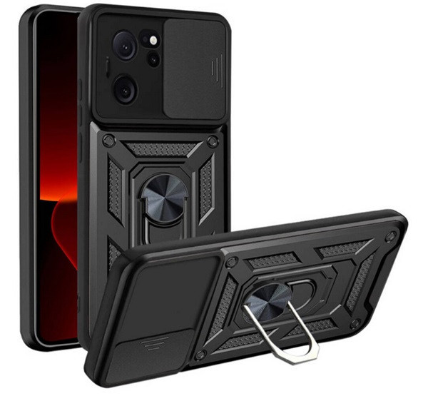 Defender szilikon telefonvédő (ütésállóság, tartógyűrű, kameravédő) FEKETE