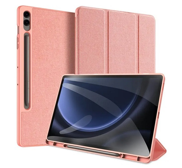 DUX DUCIS DOMO tok álló, bőr hatású (aktív FLIP, oldalra nyíló, TRIFOLD, asztali tartó, ceruza tartó) RÓZSASZÍN