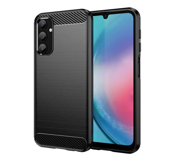 Szilikon telefonvédő (ütésállóság, légpárnás sarok, szálcsiszolt, karbon minta) FEKETE