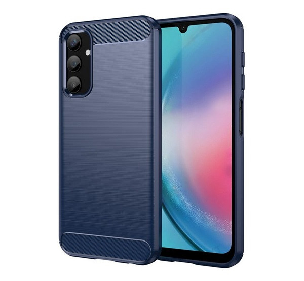 Szilikon telefonvédő (ütésállóság, légpárnás sarok, szálcsiszolt, karbon minta) SÖTÉTKÉK