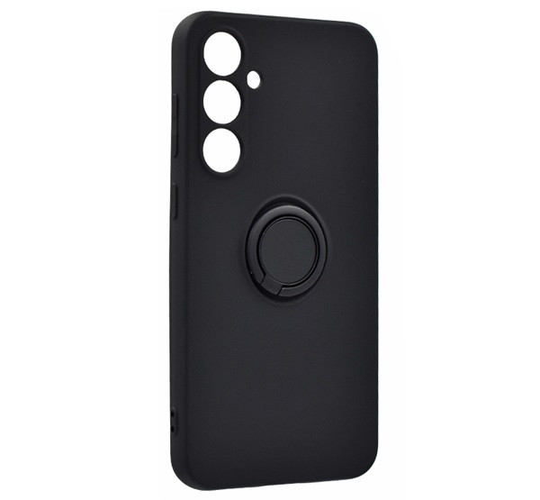 Szilikon telefonvédő (tartógyűrű, mikrofiber plüss belső, mágneses, kameravédő) FEKETE