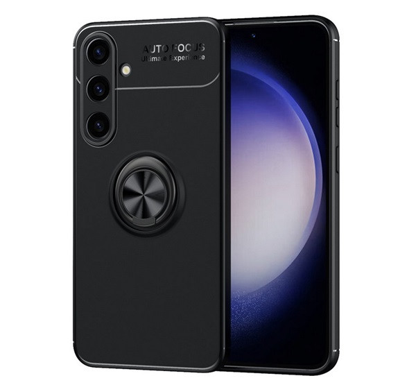 Szilikon telefonvédő (asztali tartó, tartógyűrű, 360°, mágneses) FEKETE