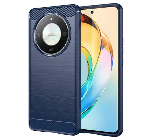 Szilikon telefonvédő (ütésállóság, légpárnás sarok, szálcsiszolt, karbon minta) SÖTÉTKÉK