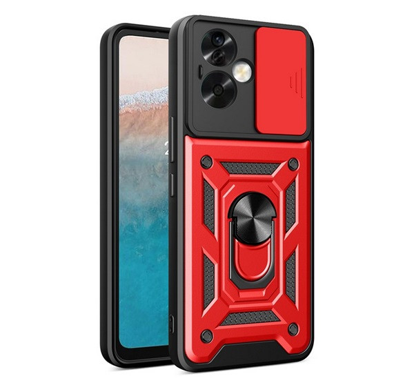 Defender szilikon telefonvédő (ütésállóság, tartógyűrű, kameravédő) PIROS