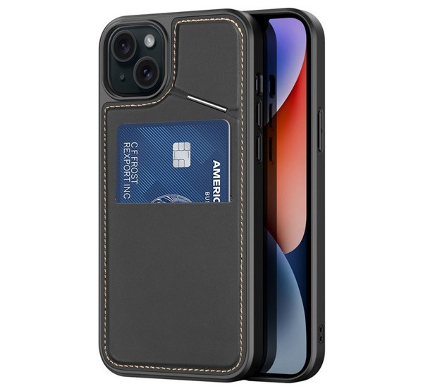 DUX DUCIS RAFI II MAG szilikon telefonvédő (kitámasztó, kártyazseb, RFID, MagSafe) FEKETE