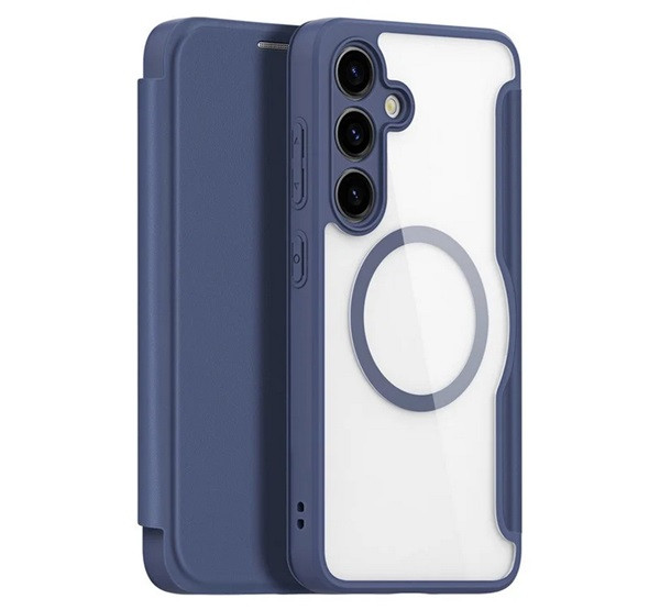 DUX DUCIS SKIN X PRO tok álló, bőr hatású (FLIP, oldalra nyíló, RFID, MagSafe) SÖTÉTKÉK