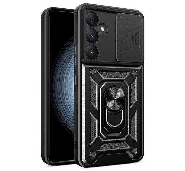 Defender szilikon telefonvédő (ütésállóság, tartógyűrű, kameravédő) FEKETE