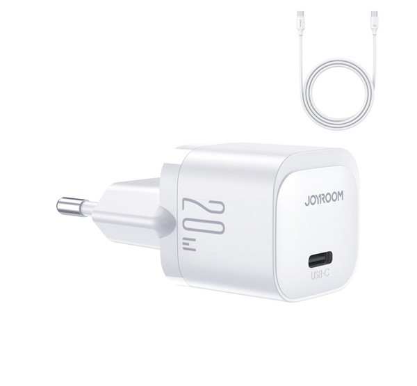 JOYROOM MINI hálózati töltő Type-C aljzat (20W, PD gyorstöltő + Type-C kábel) FEHÉR