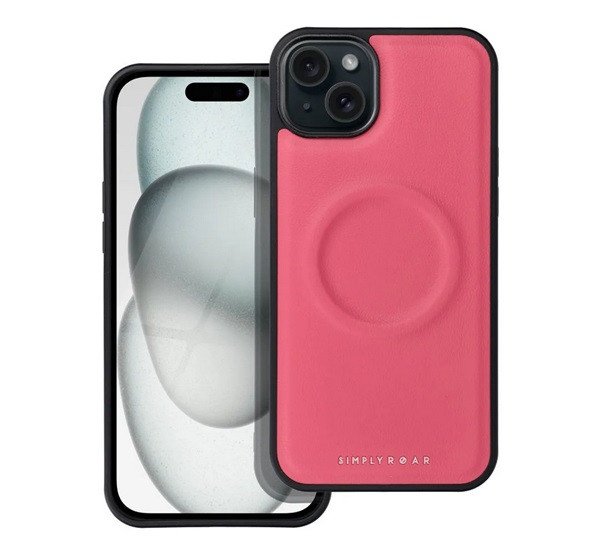 ROAR MAG MORNING szilikon telefonvédő (ECO bőr hatású, mikrofiber plüss belső, MagSafe) RÓZSASZÍN