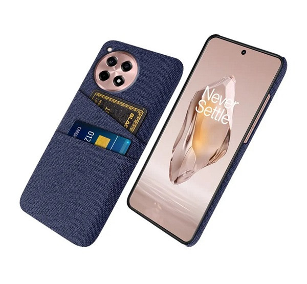 Műanyag telefonvédő (ütésállóság, kártyatartó, textil hatás) SÖTÉTKÉK