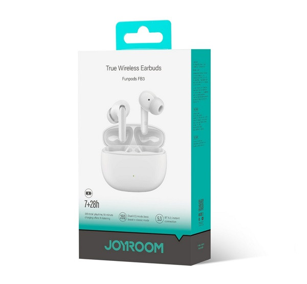 JOYROOM FUNPODS FB3 bluetooth fülhallgató SZTEREO (v5.3, TWS, mikrofon, zajszűrő, IP54, cseppálló + töltőtok) FEHÉR