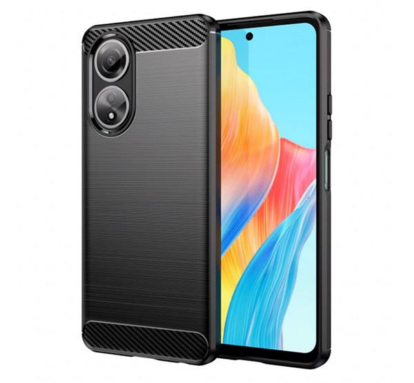 Szilikon telefonvédő (ütésállóság, légpárnás sarok, szálcsiszolt, karbon minta) FEKETE