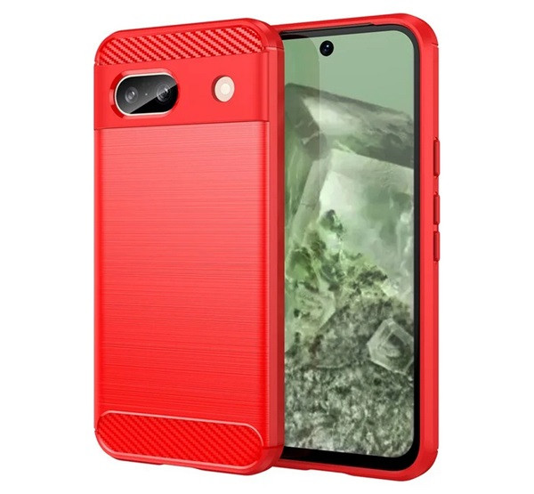Szilikon telefonvédő (ütésállóság, légpárnás sarok, szálcsiszolt, karbon minta) PIROS