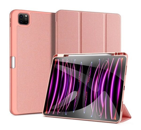 DUX DUCIS DOMO tok álló, bőr hatású (aktív FLIP, oldalra nyíló, TRIFOLD, asztali tartó, ceruza tartó) RÓZSASZÍN