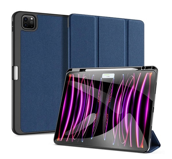DUX DUCIS DOMO tok álló, bőr hatású (aktív FLIP, oldalra nyíló, TRIFOLD, asztali tartó, ceruza tartó) SÖTÉTKÉK
