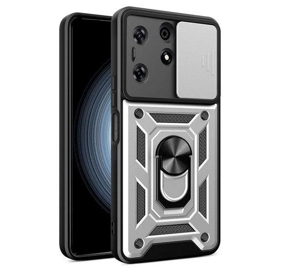 Defender szilikon telefonvédő (ütésállóság, tartógyűrű, kameravédő) EZÜST