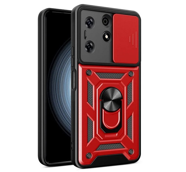 Defender szilikon telefonvédő (ütésállóság, tartógyűrű, kameravédő) PIROS