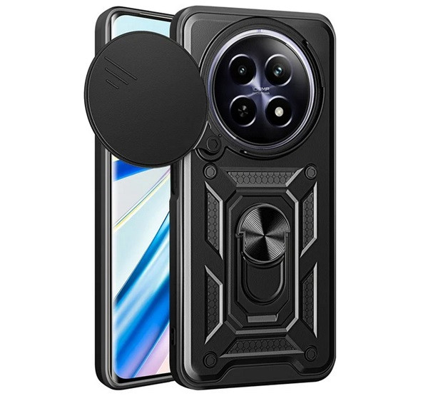 Defender szilikon telefonvédő (ütésállóság, tartógyűrű, kameravédő) FEKETE