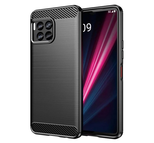 Szilikon telefonvédő (ütésállóság, légpárnás sarok, szálcsiszolt, karbon minta) FEKETE