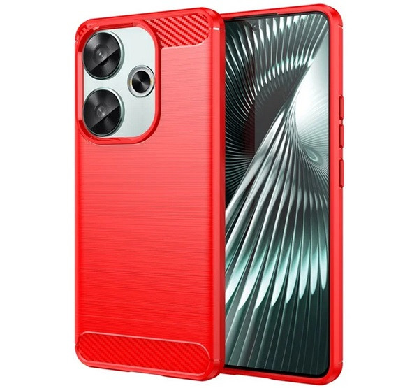 Szilikon telefonvédő (ütésállóság, légpárnás sarok, szálcsiszolt, karbon minta) PIROS