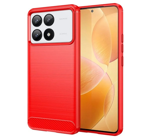 Szilikon telefonvédő (ütésállóság, légpárnás sarok, szálcsiszolt, karbon minta) PIROS