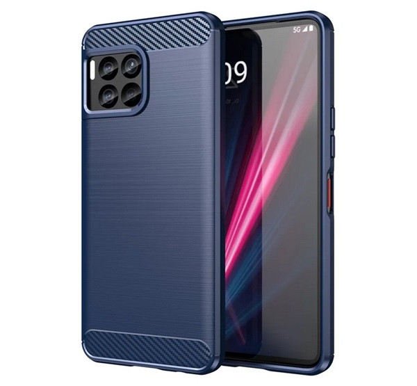 Szilikon telefonvédő (ütésállóság, légpárnás sarok, szálcsiszolt, karbon minta) SÖTÉTKÉK