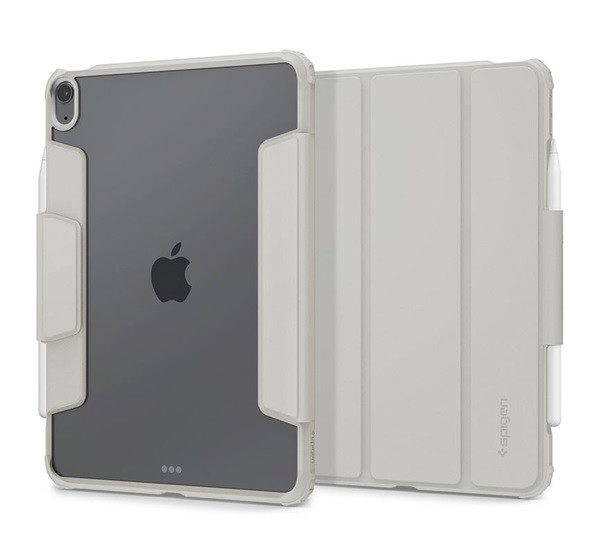 SPIGEN AIR SKIN PRO tok álló, ECO bőr hatású (aktív FLIP, oldalra nyíló, TRIFOLD, asztali tartó, ceruza tartó) KRÉM