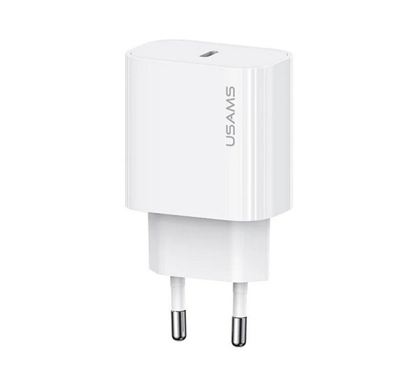 USAMS T65 hálózati töltő Type-C aljzat (20W, PD gyorstöltő) FEHÉR