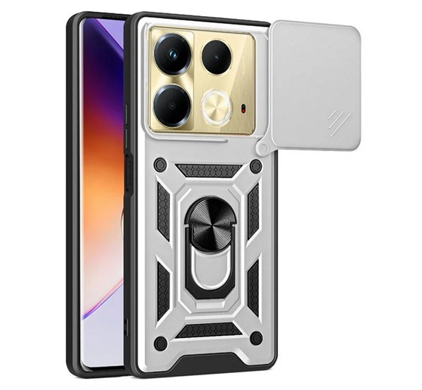 Defender szilikon telefonvédő (ütésállóság, tartógyűrű, kameravédő) EZÜST