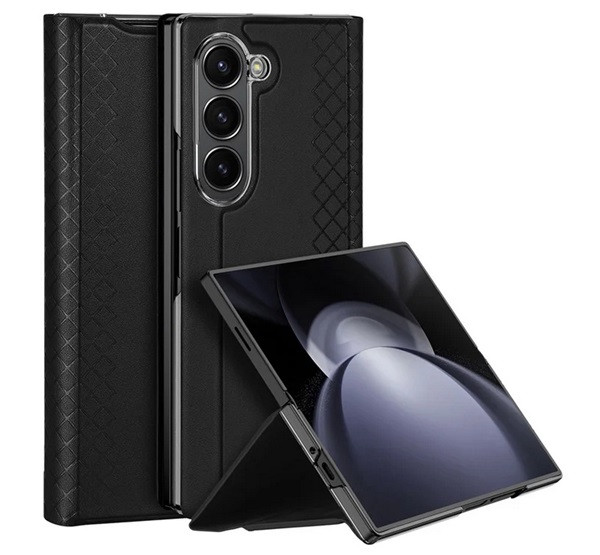 DUX DUCIS BRIL műanyag telefonvédő (ütésállóság, bőr hatású hátlap, asztali tartó, rombusz) FEKETE