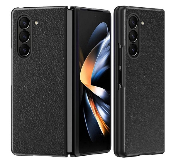 Műanyag telefonvédő (bőr hatású bevonat) FEKETE