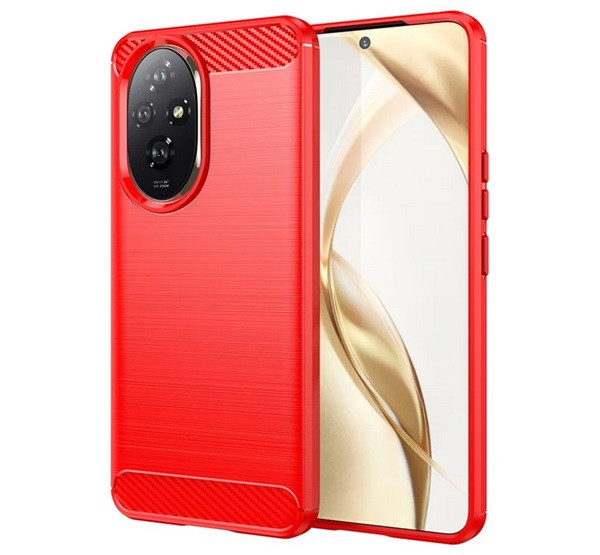 Szilikon telefonvédő (ütésállóság, légpárnás sarok, szálcsiszolt, karbon minta) PIROS