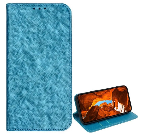 Tok álló, bőr hatású (FLIP, oldalra nyíló, asztali tartó, kártyazseb, textil hatás) VILÁGOSKÉK